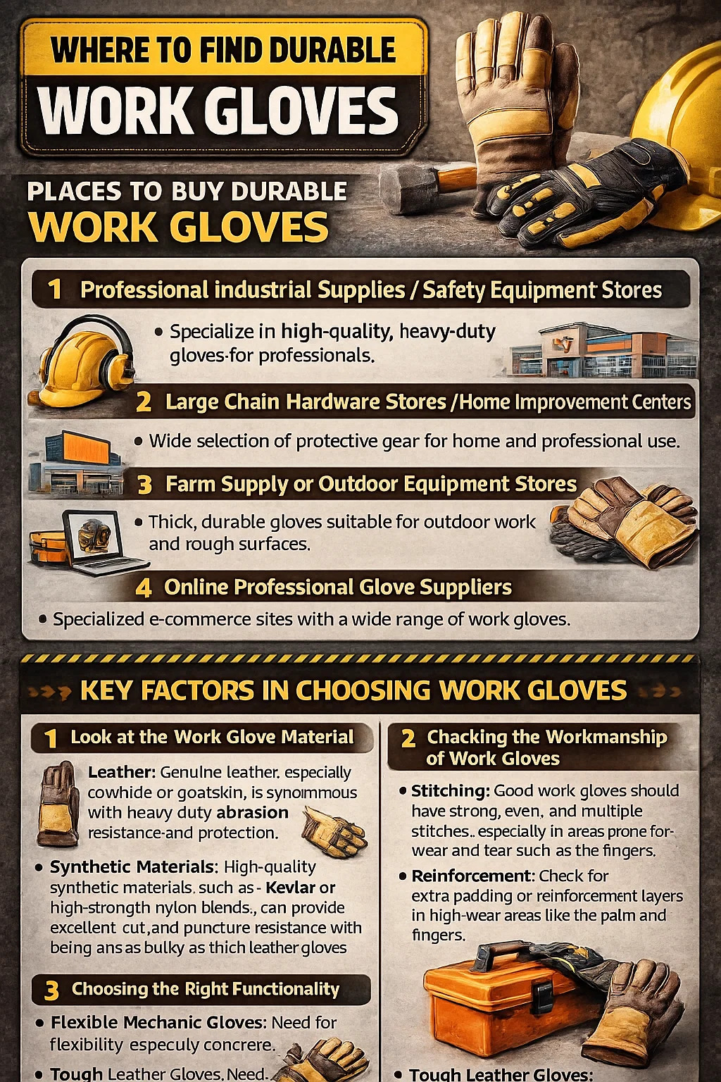 Om du behöver arbetshandskar för grovt arbete, som att hantera timmer, vassa verktyg eller arbeta utomhus, överväg dessa platser.
