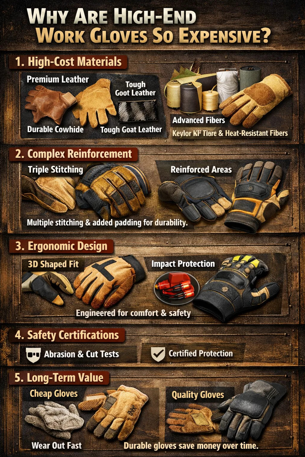 När folk ser arbetshandskar prissatt till tiotals eller till och med hundratals dollar, är deras första reaktion ofta, "Det är bara en bit läder eller tyg, varför är det så dyrt?"