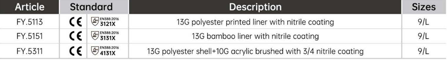 Dessa handskar använder en nitrilgummibeläggning över ett bashandskmaterial, vilket skapar en sammansatt skyddsstruktur som ger en extra barriärfunktion.